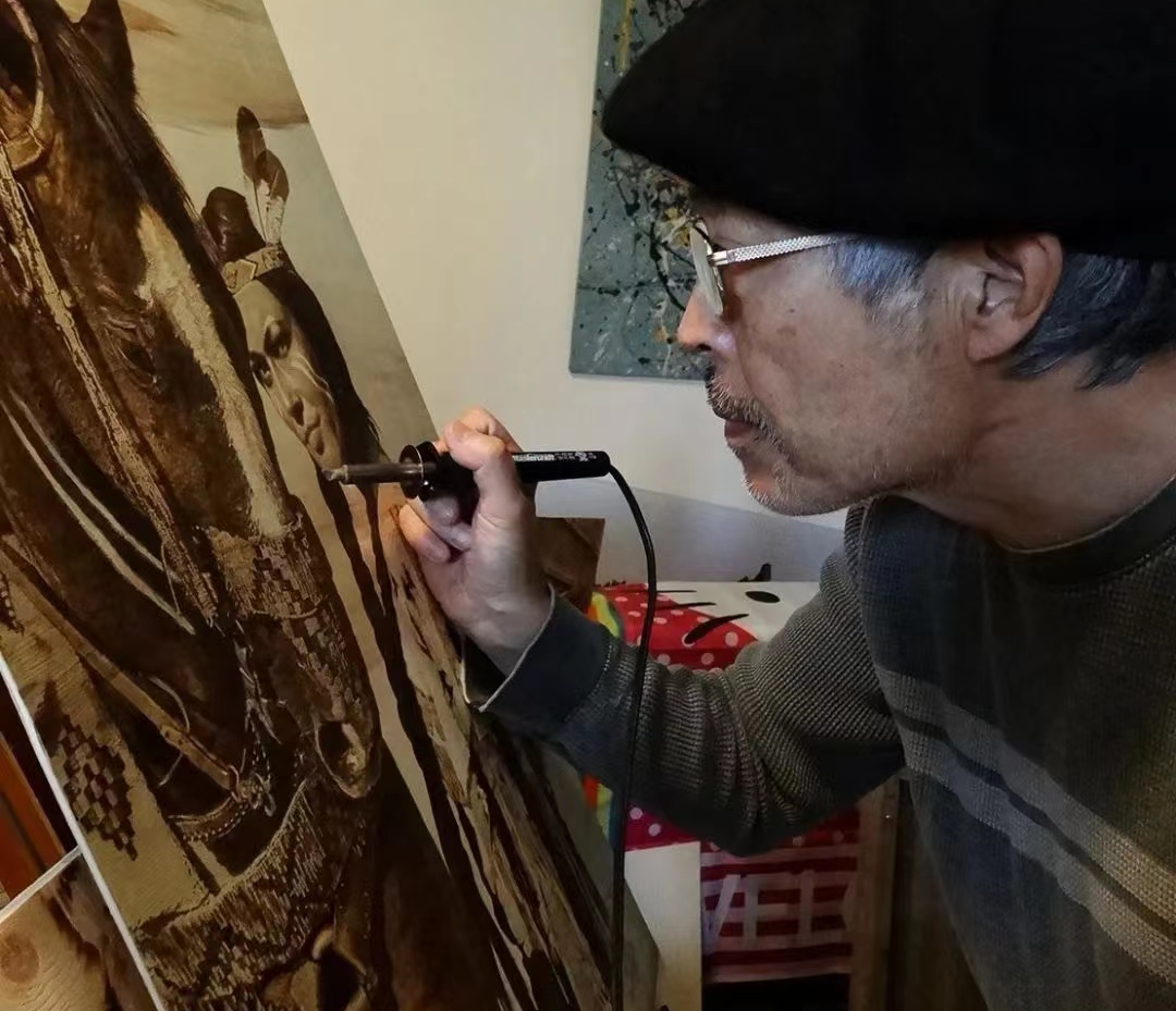 With rich life experience, outstanding artistic talent and relentless pursuit of art, his pyrography works have established a distinctive artistic identity in both technique and connotation.