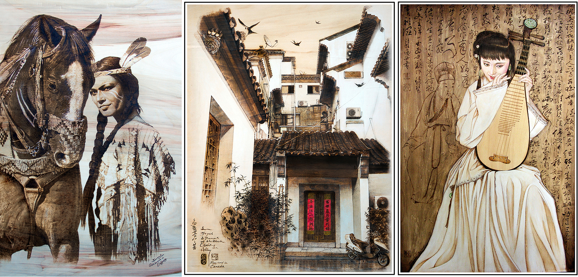 During his stay in Canada, Mr. Han Shen held a solo pyrography exhibition at the Western Gallery of the Calgary Stampede.