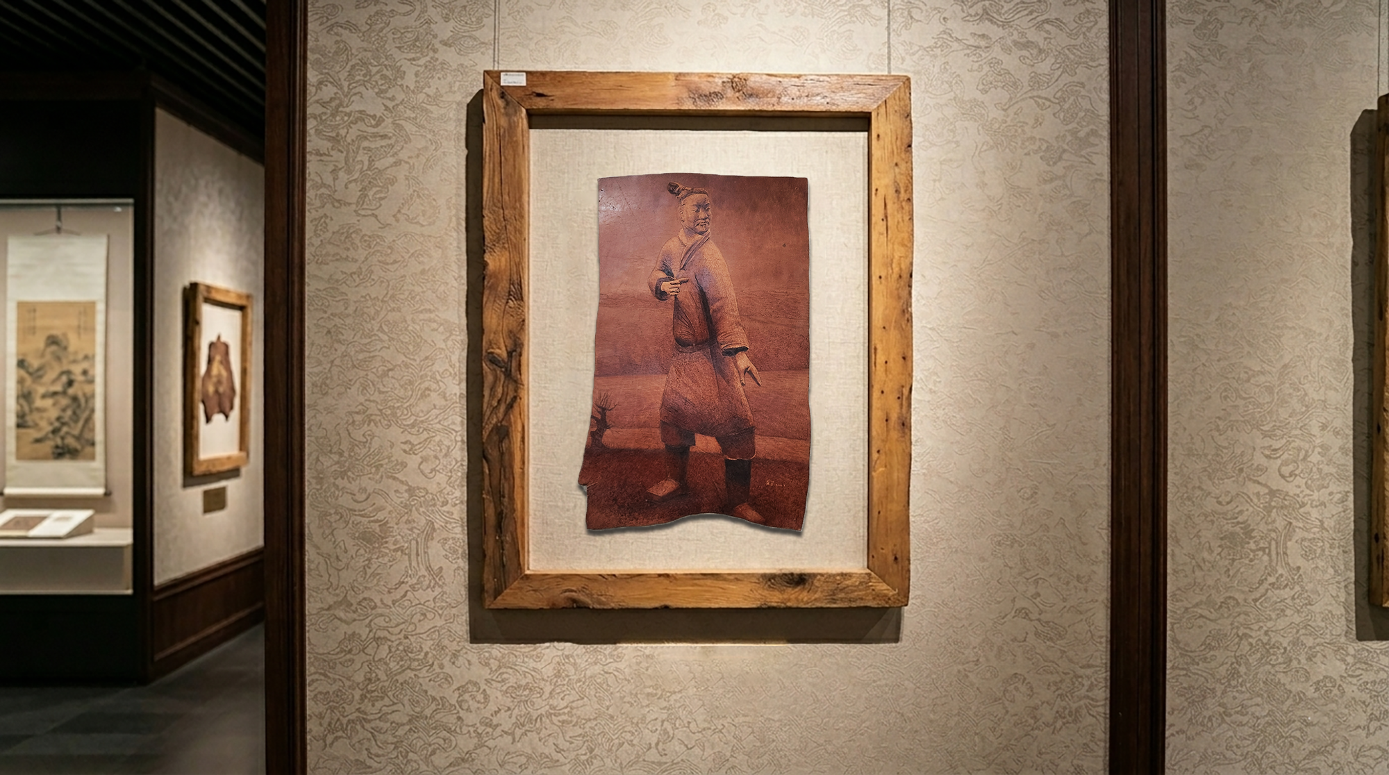 The uniqueness of the series lies in not being limited to simple image reproduction, but integrating artistic innovation on the basis of respecting history. The creator skillfully combines the texture and rendering techniques of Chinese painting with Western realistic techniques, making the works have both the ancient charm of intangible cultural heritage pyrography and the aesthetic tension of contemporary art; at the same time, she makes good use of the natural irregular edges of cowhide, turning them into part of the works to add a sense of historical weight. She also integrates the family and country feelings from "The Book of Songs·Qin Feng" into the creation, making the cold pottery figurines a group of Qin people with spirit and temperature, allowing the Qin spirit to be inherited in the small cowhide. This series of works is not only the ultimate display of pyrography skills, but also the contemporary artistic expression of Qin civilization, reviving the intangible cultural heritage techniques and allowing the world to understand the profoundness of Qin civilization through this small piece of cowhide.