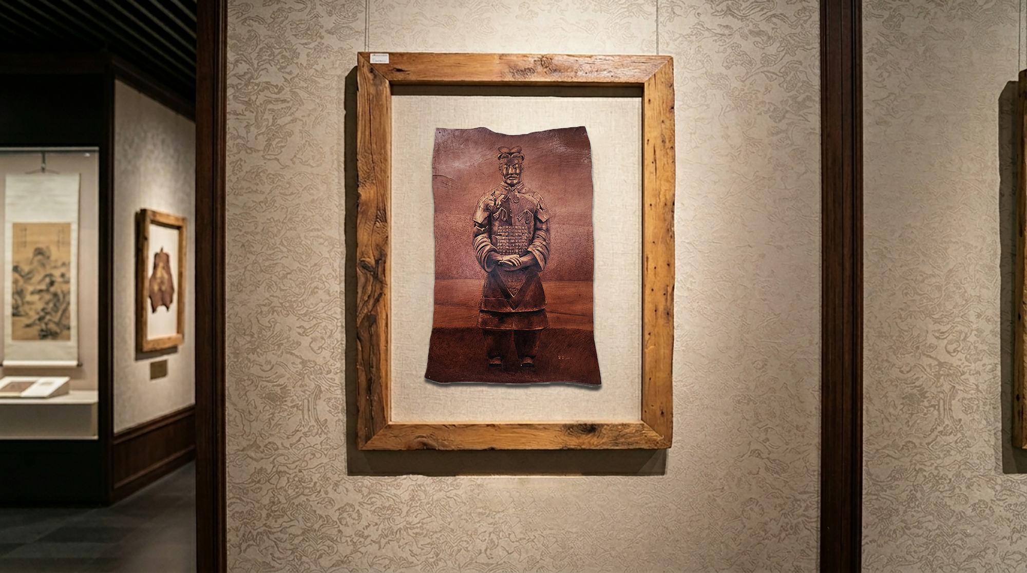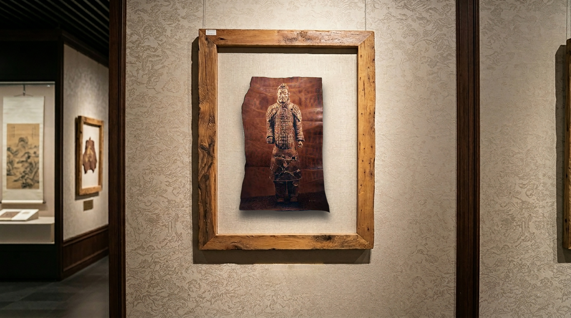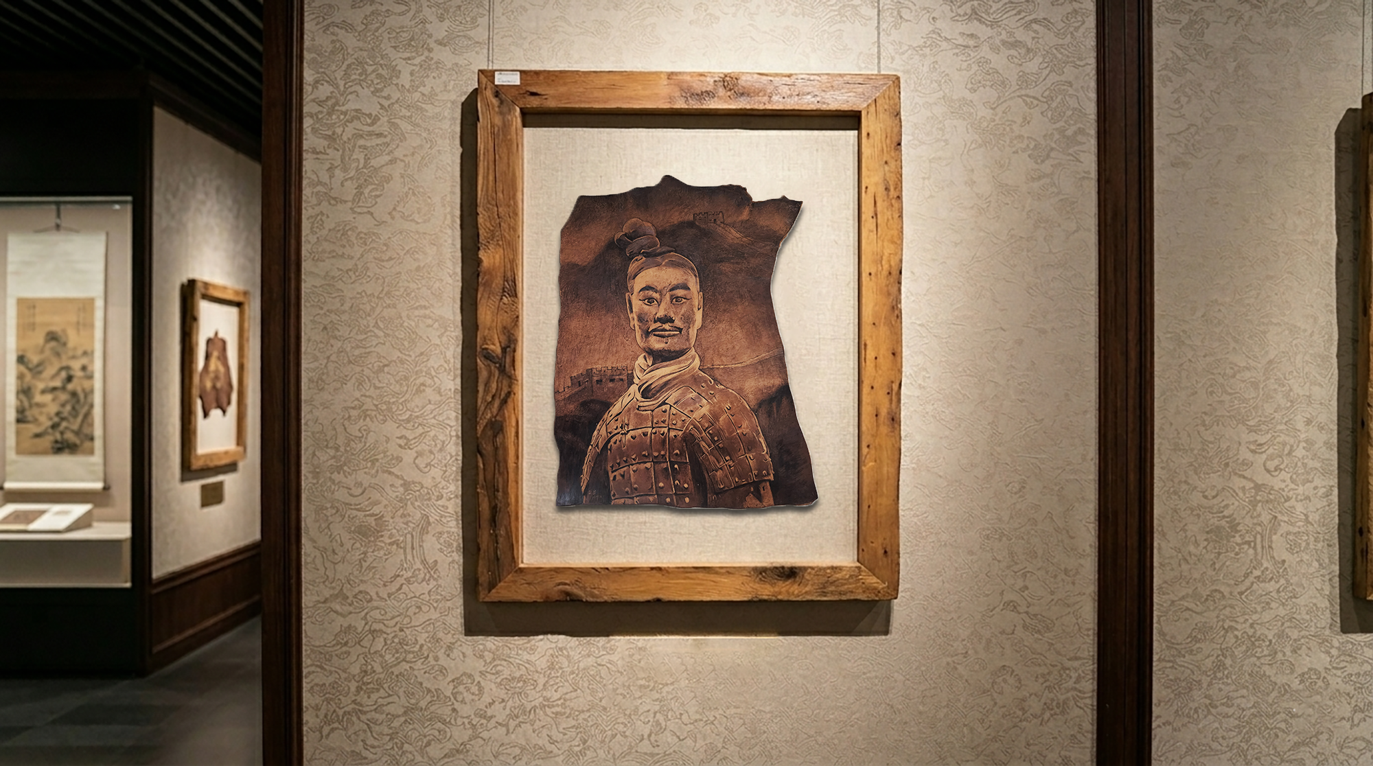 Li Cailan’s "Terracotta Warriors - Great Qin Empire" cowhide pyrography series is a high-quality work that deeply integrates intangible cultural heritage pyrography with Qin Dynasty civilization. With natural cowhide as the carrier and the "carving and burning" technique as the support, it condenses the thousand-year spirit of the Terracotta Warriors and the grandeur of the Great Qin Empire on a small piece of cowhide. Focusing entirely on the works, it reproduces the elegance of the Qin Dynasty with ingenuity and highlights the contemporary vitality of intangible cultural heritage techniques.