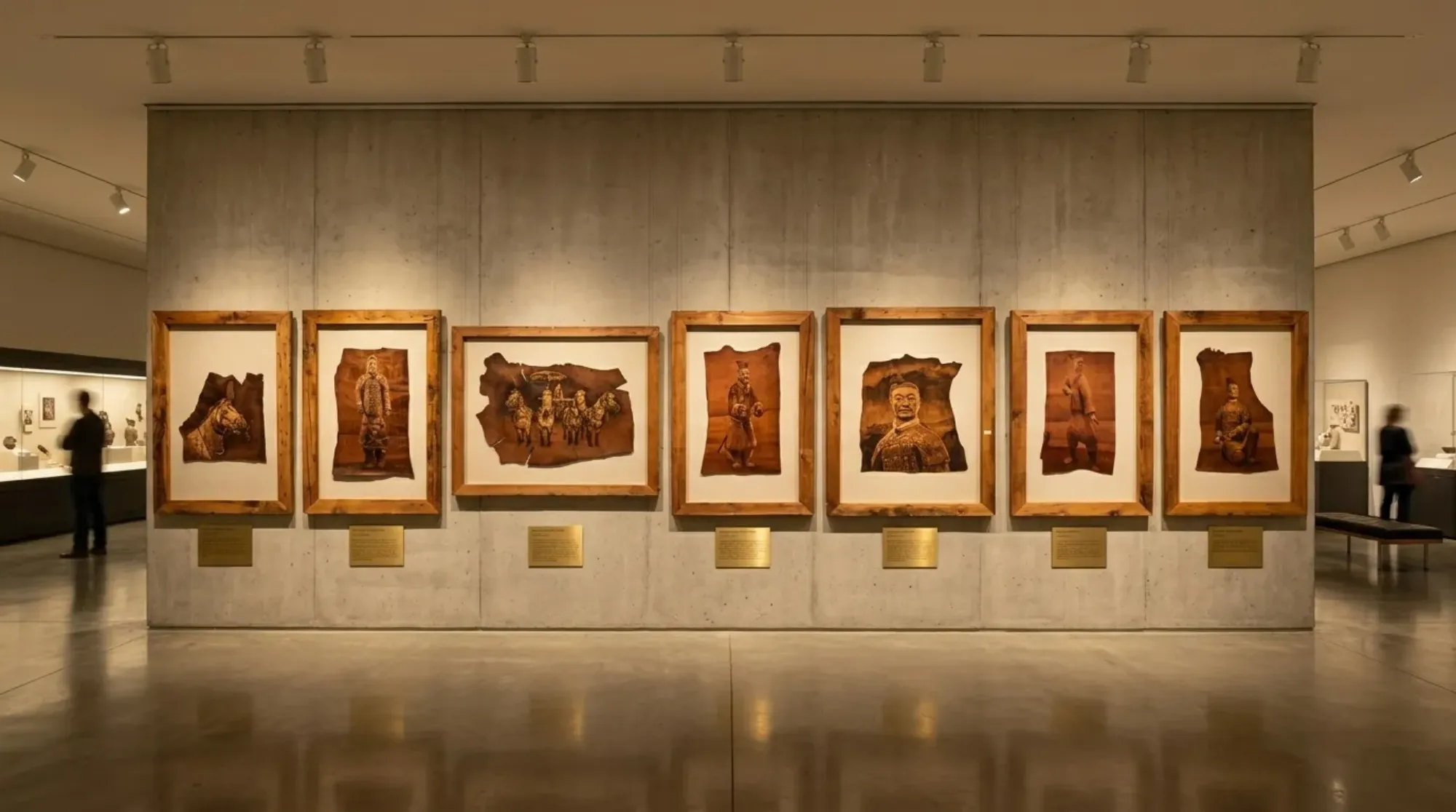 The core highlight of the works lies in the exquisite combination of materials and techniques, which is also the key difference from traditional pyrography. In terms of materials, natural cowhide specially tanned and greased is selected. Its natural brownish-red texture forms a sharp contrast with the black and dark brown after burning, with a sense of vicissitudes of time, which exactly echoes the profound heritage of the Great Qin Empire, making the works seem to be unearthed from the thousand-year-old Qin Dynasty ruins, with the texture of historical precipitation. In terms of techniques, the original "carving and burning" technique is used. Each work has to go through four processes: "outlining, carving, burning and dyeing, and polishing". First, a fine knife is used to carefully carve the rigid lines of the armor and the muscle texture of the pottery horses, then an iron with controllable temperature is used to iron and dye layer by layer. Through the subtle control of high, medium and low temperatures, rich light and shade layers are presented, making the Terracotta Army images three-dimensional, vivid and lifelike——the dignity and coldness of the general figurines, the perseverance and calmness of the kneeling archers, and the vigor and vitality of the pottery horses are all depicted vividly.